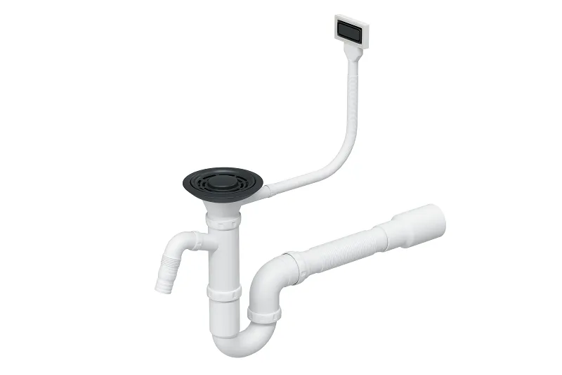 Прямоугольный перелив и слив диаметром 90 мм позволяют удобно использовать сифон с различными типами моек. Белый цвет корпуса гармонично сочетается с чёрными элементами — сливной корзиной и переливом, создавая стильный и современный дизайн.